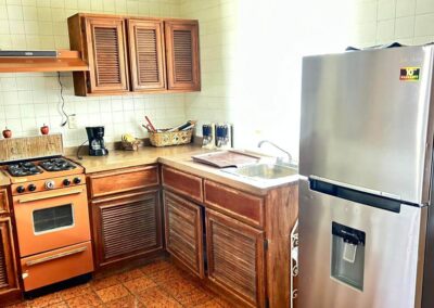Prepara tus platillos favoritos en nuestra cocina completa, que incluye refrigerador, microondas, estufa, cafetera y utensilios básicos.