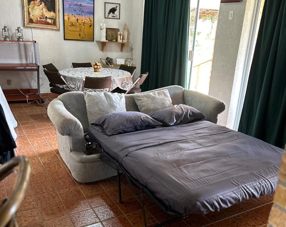 Dos cómodas recámaras privadas en el primer piso con camas king size, y un tapanco en el segundo piso con 1 cama matrimonial, 1 cama individual y 2 catres.