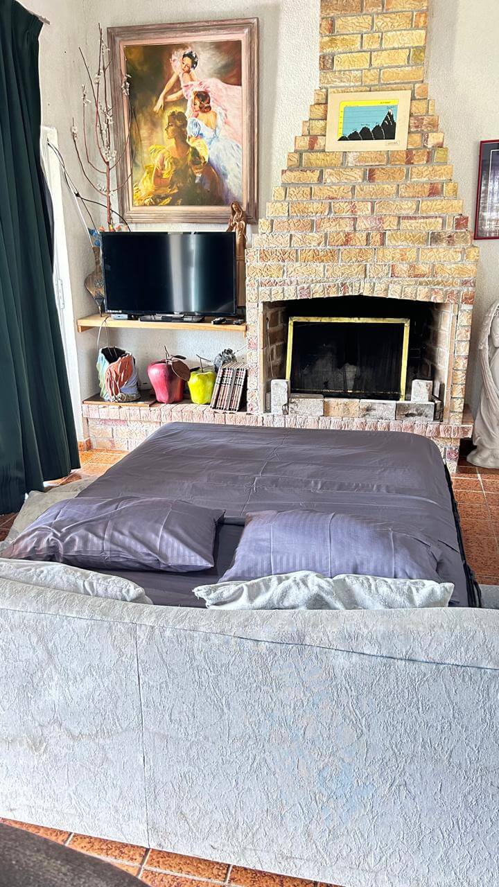 Relájate en la sala con una chimenea y sofá cama, perfecto para 2 personas adicionales.